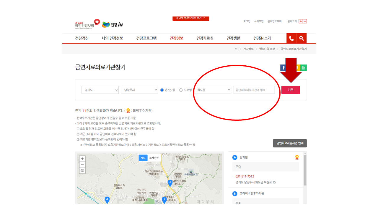 보건소에서 운영하는 프로그램하고는 완전히 다른 방법으로 의료기관에서도 금연치료가 가능합니다. ▶ 건강IN(국민건강보험공단) 사이트를 들어가서 ▶ 금연치료의료기관 찾기를 클릭하면, 금연 클리닉 협력 병원 검색이 가능합니다. 우리동네 가까운 병원을 선택해서 금연 치료를 받을 수 있는데요, 1.2회차 비용(진료비+약값)은 본인부담이지만, 3회차부터는 본인부담금이 면제됩니다. 그리고 금연 성공시 1.2회차때 발생했던 비용은 모두 환급해준다고 합니다.